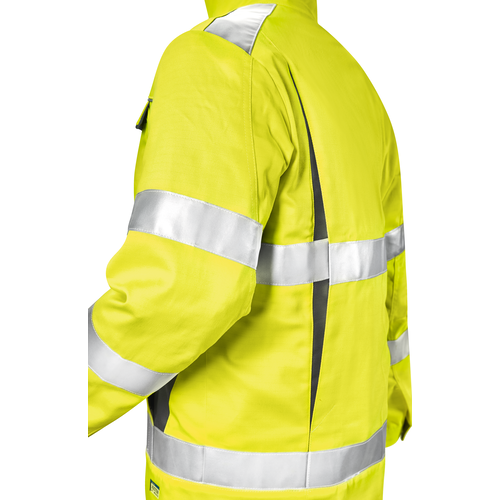 3M™-Flammschutz-Reflex-Streifen: 5 cm breit, 1 Streifen über dem Bund, 1 Streifen unter den Brusttaschen, je 1 Streifen an den Ober- und Unterarmen rundum